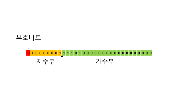 위에서 실수형은 부호,지수,가수로 이루어졌다고 했는데, 부동 소수점을 뜻한것이다.