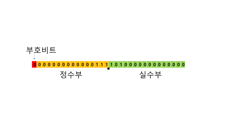 정수부엔 실수의 정수부분을 넣고, 소수부엔 실수의 소수부분을 넣는다.