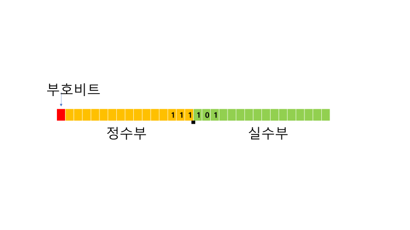 부호비트는 양수,정수를 판별하는 0,1을 넣고,