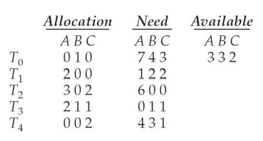 - 할당된 리소스 제외 필요한 리소스 개수(need) A: 7, B: 4, C: 3