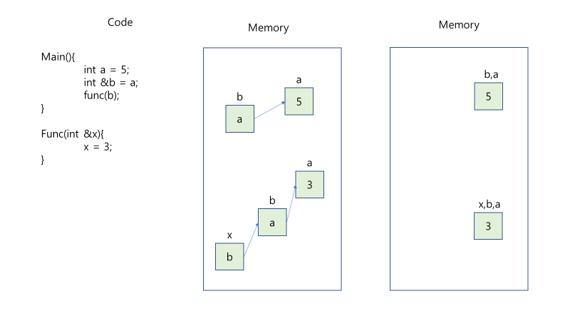 Call By Reference란 참조에 의한 호출로,함수 호출 시 별도의 메모리 공간을 생성하고(함수 종료 시 사라짐)