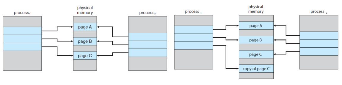- write시엔 문제가 되니 그때 copy로 나누어서 사용하는 메모리를 나눔(page table을 수정)