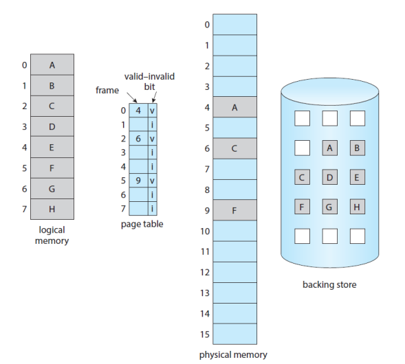 - page fault 발생 시 실제 메모리에 적재하는 작업 시행(page in이라고 부름)