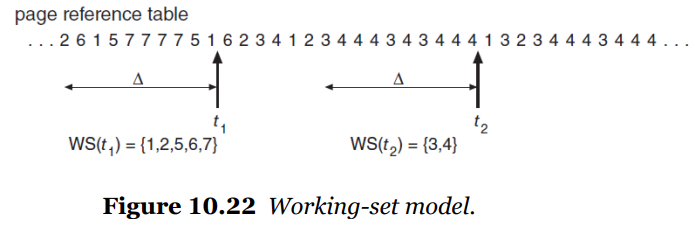 - window size(△)1를 지정해주고, 이를 바탕으로 working set을 구함.(△의 크기는 시스템이 정함)