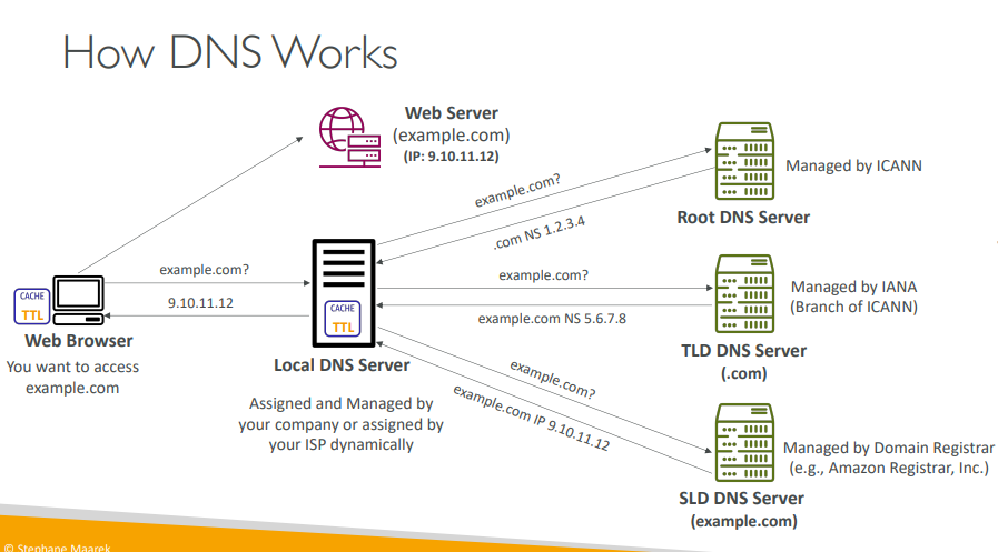 - 브라우저는 캐시가 저장된 recursive DNS server를 사용하고, 변경/기록/저장 등은authoritative DNS server 에서 함