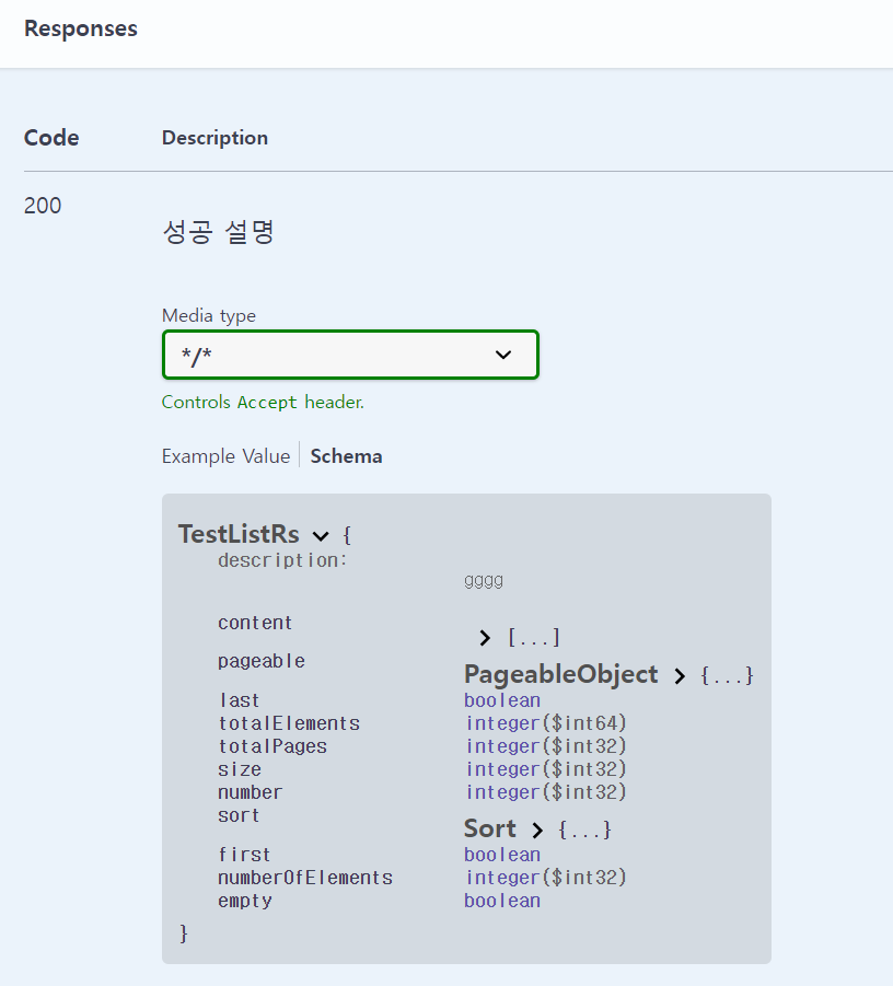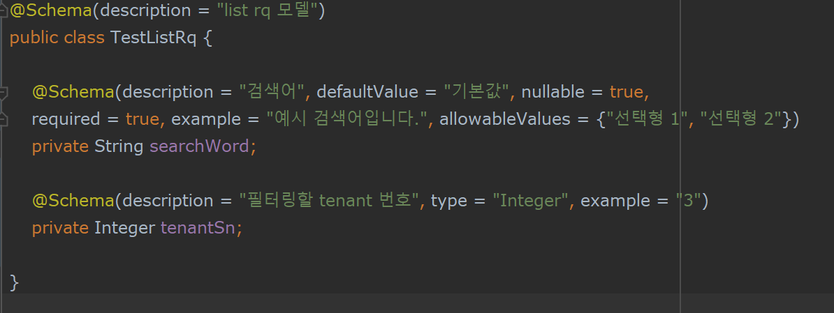 - 해당 Object 내의 필드에는 @Parameter를 붙여야 정상적으로 스웨거에서 동작