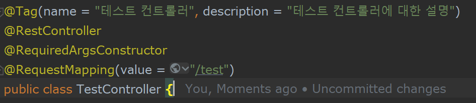@Tag : 컨트롤러 적용 api 그룹 어노테이션
