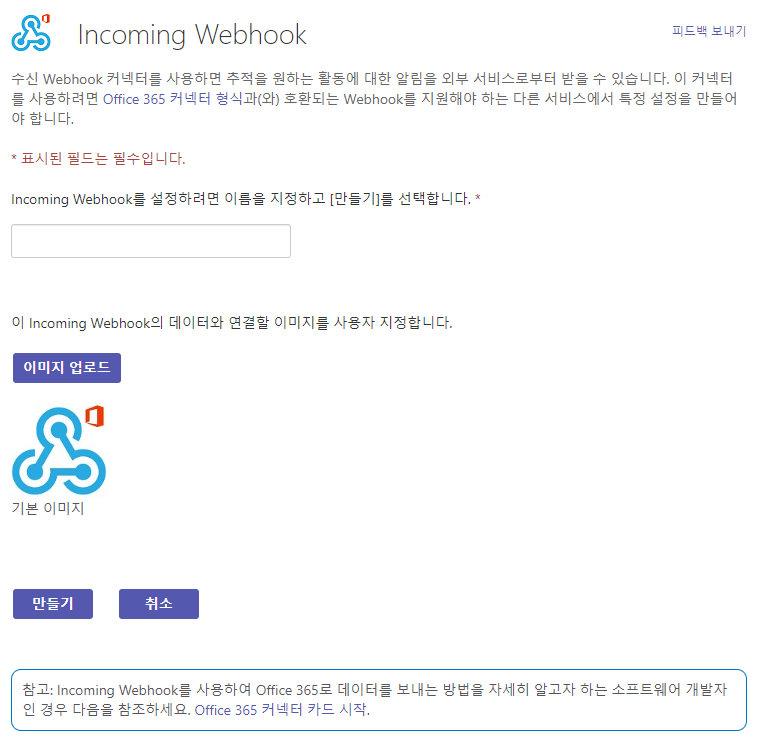 해당 화면이 나오는데, 팀즈로 날라올 메세지의 이름과 이미지라고 생각하면 된다.