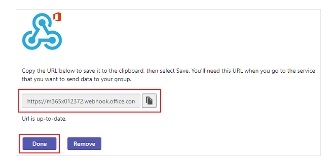 해당 채널에 메세지를 보내기 위한 고유 웹후크 URL이 생성된다.
