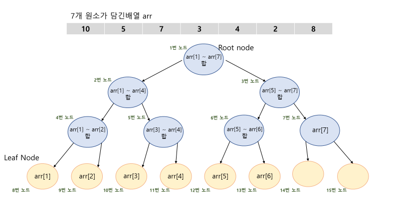 부분배열의 합을 구하는 쿼리가 들어오면, 루트노드부터 확인합니다.