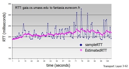EstimatedRTT(t)= (1-a)*EstimatdeRTT(t-1) + a*SampleRTT(t)
