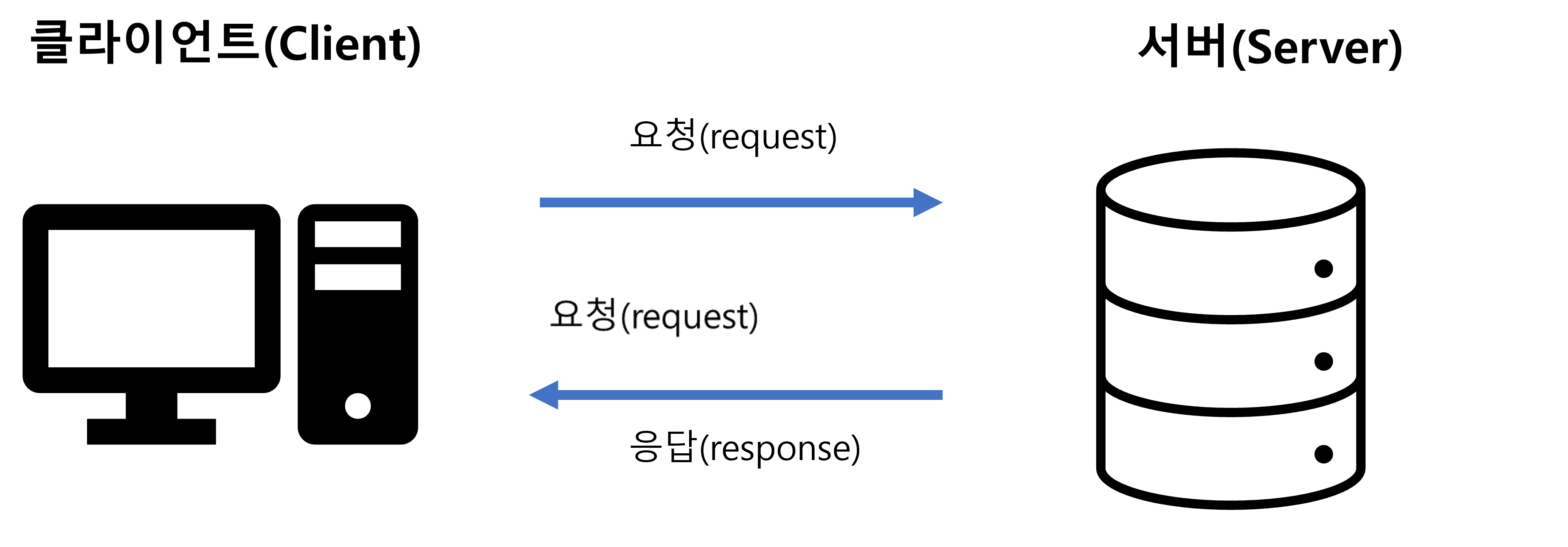 클라이언트에서 요청 (Request) 를 보내면 서버가 요청을 받고 처리하여 응답(Response)을 한다.